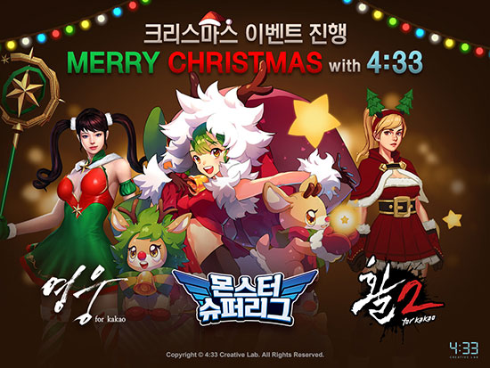 ³×½Ã»ï½Ê»ïºÐ(ÀÌÇÏ 4:33)Àº ¸ð¹ÙÀϰÔÀÓ ¡®È°2 for kakao¡¯, ¡®¿µ¿õ for kakao¡¯, ¡®¸ó½ºÅͽ´ÆÛ¸®±×¡¯¿¡¼ Å©¸®½º¸¶½º Ưº° À̺¥Æ®¸¦ ÁøÇàÇÑ´Ù.