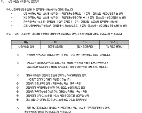 ³Ø½¼Àº °í°´°ú ÃÖÁ¢Á¡¿¡¼­ ¸¶ÁÖÇÏ´Â »ó´ã»çÀÇ ÀαÇÀ» º¸È£ÇÏ°í º¸´Ù ÄèÀûÇÑ ¿î¿µÈ¯°æÀ» ±¸ÃàÇϱâ À§ÇØ 2018³â 2¿ù 5ÀϺÎÅÍ ¿Â¶óÀÎ ¹× ¸ð¹ÙÀϰÔÀÓ ¿î¿µÁ¤Ã¥¿¡ '»ó´ã»ç À뱂 º¸È£¸¦ À§ÇÑ ¿î¿µÁ¤Ã¥'À» Àû¿ëÇÒ ¿¹Á¤ÀÌ´Ù.