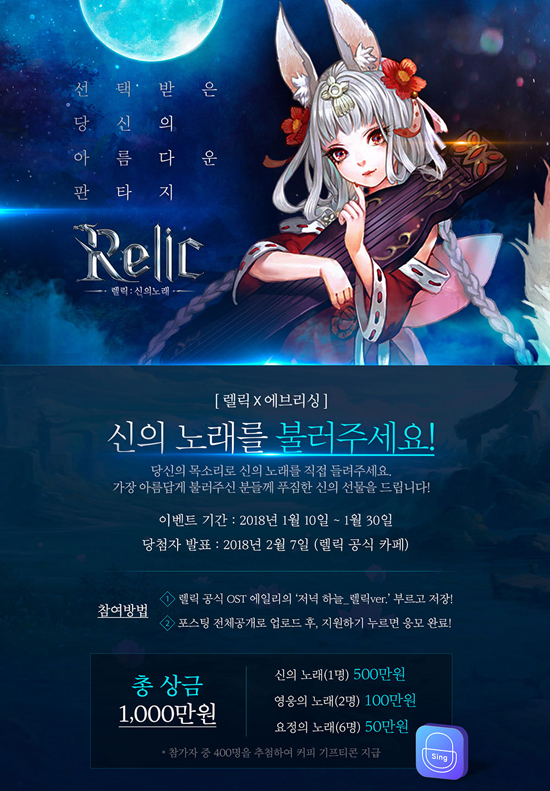 Àα⠰¡¼ö ¿¡Àϸ®ÀÇ È÷Æ®°î ¡®Àú³á Çϴá¯À» OST·Î äÅÃÇÑ ÆÇŸÁö °ÔÀÓ ¡®·¼¸¯¡¯Àº Ãâ½Ã Àü±îÁö ÁøÇàÇÏ´Â »çÀü¿¹¾à¿¡¼ Ưº°ÇÑ ÇÁ·Î¸ð¼ÇÀ» ÁøÇàÇÑ´Ù. ±¹³» ÃÖ°íÀÇ ³ë·¡¾îÇà ¡®¿¡ºê¸®½Ì¡¯°ú ÃÑ»ó±Ý 1õ¸¸ ¿ø ±Ô¸ðÀÇ Ä÷¡¹ö·¹À̼ÇÀ» ÁøÇàÇÏ¿© ÀÌ¿ëÀÚ°¡ °ÔÀÓ OST Á¦ÀÛ¿¡ Á÷Á¢ Âü¿©ÇÒ ¼ö ÀÖ´Â ±âȸ¸¦ Á¦°øÇÑ´Ù.