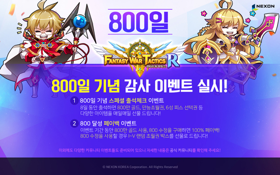 ³Ø½¼Àº 12ÀÏ ³Ø½¼·¹µå°¡ °³¹ßÇÑ ¸ð¹ÙÀÏSRPG(Strategy/Simulation Role Playing Game) 'ÆÇŸÁö¿öÅÃÆ½½ºR(Fantasy War Tactics R)¡¯ ¼ºñ½º 800ÀÏÀ» ¸Â¾Æ ´Ùä·Î¿î ÇýÅÃÀ» Á¦°øÇÏ´Â À̺¥Æ®¸¦ ÁøÇàÇÑ´Ù°í ¹àÇû´Ù.