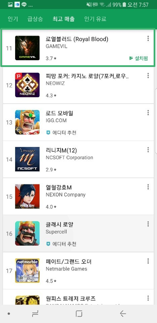 ƯÈ÷ ±¸±Û Ç÷¹ÀÌ ¸ÅÃâ ¼øÀ§´Â 30À§±Ç¿¡¼­ ÇöÀç 11À§·Î ²±Ãæ ¶Ù¾î¿Ã¶úÀ¸¸ç, ¹«·á Àα⠼øÀ§µµ 3À§¸¦ °í¼ö ÁßÀÌ´Ù. ¾ÖÇà ¾Û½ºÅä¾î ¾ÆÀÌÆù°ú ¾ÆÀÌÆÐµå ¸ÅÃâ ¿ª½Ã »óÀ§¸¦ Â÷ÁöÇϰí ÀÖÀ¸¸ç, °ø½Ä Ä«Æä °¡ÀÔÀÚ ¼öµµ 11¸¸ ¸íÀ» µ¹ÆÄÇß´Ù.