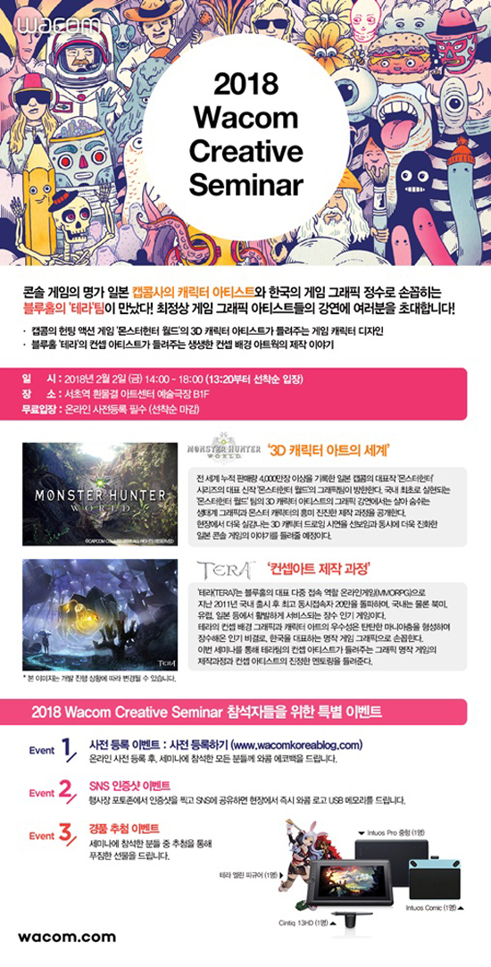 ÅÂºí¸´ Àü¹® ±â¾÷ ¿ÍÄÞ(Wacom)ÀÇ Çѱ¹¹ýÀÎ Çѱ¹¿ÍÄÞÀº ¿À´Â 2¿ù 2ÀÏ(±Ý) ¼­ÃÊ¿ª ȯ¹°°á ¾ÆÆ®¼¾ÅÍ ¿¹¼ú±ØÀå¿¡¼­ ¿ÀÈÄ 2½ÃºÎÅÍ 6½Ã±îÁö À¯¸í °ÔÀÓ ¾ÆÆ¼½ºÆ®¿Í ÇÔ²²ÇÏ´Â ¡®2018 ¿ÍÄÞ Å©¸®¿¡ÀÌÆ¼ºê ¼¼¹Ì³ª : °ÔÀÓ ±×·¡ÇÈ ¾ÆÆ¼½ºÆ® Ư°­¡¯À» ¹«·á·Î ½Ç½ÃÇÑ´Ù.