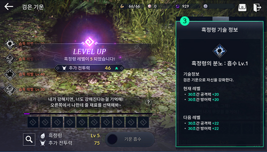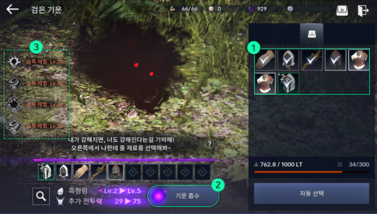 À¯Àú´Â '°ËÀº ±â¿î' ¸Þ´º¿¡¼ ÈæÁ¤·ÉÀ» ¼ºÀå½Ãų ¼ö ÀÖ´Ù. ÀÌ¿ëÀÚµéÀÇ º¸À¯ Àåºñ, ÀÀÃàµÈ °ËÀº ±â¿îÀ» Àç·á·Î »ï¾Æ ÈæÁ¤·ÉÀ» ¼ºÀå½Ã۸é Ãß°¡ ÀüÅõ·Â ȹµæÀÌ °¡´ÉÇÏ´Ù. ±â¿îÀ¸·Î Èí¼öµÈ Àåºñ´Â ¼Ò¸êÇÏ´Ï Àç·á ¼±Åÿ¡ ½ÅÁßÀ» ±âÇØ¾ß ÇÑ´Ù.
