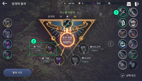 Ÿ °ÔÀÓ°ú ´Þ¸®, ÁÖ¿äÀåºñ ÀáÀç·Â µ¹ÆÄ È®·üÀ» À¯Àú°¡ Á÷Á¢ ¼³Á¤ÀÌ °¡´ÉÇÏ´Ù. ºí·¢½ºÅæ µî±Þ¿¡ µû¶ó µ¹ÆÄ È®·ü Áõ°¡·®ÀÌ ´Þ¶óÁö¸ç, ¼±ÅÃÇÑ ºí·¢½ºÅæ °³¼ö¸¸Å Àåºñ µ¹ÆÄ È®·üÀÌ ´©ÀûµÈ´Ù.