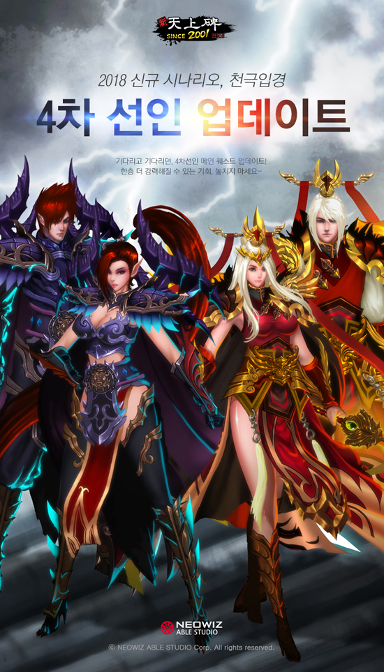 ³×¿ÀÀ§Áî´Â ÀÚȸ»ç ³×¿ÀÀ§Áî¿¡ÀÌºí½ºÆ©µð¿À°¡ °³¹ßÇÑ MMORPG(´ÙÁßÁ¢¼Ó¿ªÇÒ¼öÇà°ÔÀÓ) ¡®½Å õ»óºñ¡¯¿¡¼ ¡®Ãµ±ØÀ԰桯°ú ¡®4Â÷ ¼±ÀΡ¯ ÄÜÅÙÃ÷ ¾÷µ¥ÀÌÆ®¸¦ ´ÜÇàÇß´Ù°í 2ÀÏ ¹àÇû´Ù.