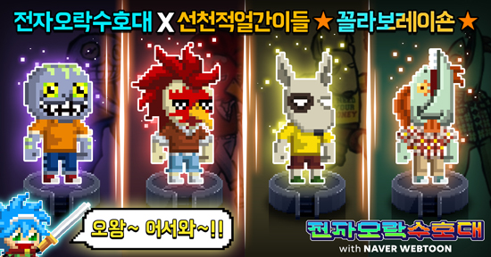 ¸ð¹ÙÀϰÔÀÓ °³¹ß»ç ½´ÆÛÇ÷¡´ÖÀÌ ¼ºñ½ºÇÏ´Â ¡®ÀüÀÚ¿À¶ô¼öÈ£´ë with NAVER WEBTOON¡¯°¡ À¥Å÷ ÀüÀÚ¿À¶ô¼öÈ£´ë ÀÛ°¡ °¡½ºÆÄµåÀÇ ¶Ç ´Ù¸¥ À¥Å÷ÀÎ ¡®¼±ÃµÀû¾ó°£À̵顯°ú Äݶ󺸸¦ ÁøÇàÇÑ´Ù. °ÔÀÓ ¡®ÀüÀÚ¿À¶ô¼öÈ£´ë with NAVER WEBTOON¡¯¿¡´Â ¼±ÃµÀû¾ó°£À̵é ij¸¯ÅÍ 4Á¾ÀÌ µîÀåÇÑ´Ù.