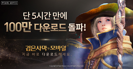 ÆÞ¾îºñ½ºÀÇ ¸ð¹ÙÀÏ MMORPG ½ÅÀÛ ¡®°ËÀº»ç¸· ¸ð¹ÙÀÏ¡¯ÀÌ 28ÀÏ ¼ºñ½º 5½Ã°£ ¸¸¿¡ 100¸¸ ´Ù¿î·Îµå¸¦ ´Þ¼ºÇϸç ÈïÇà µ¹Ç³À» ½ÃÀÛÇß´Ù.