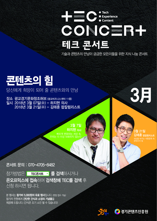 ±â¼ú°ú ÄÜÅÙÃ÷ÀÇ ¸¸³² TECÄܼƮ°¡ 3¿ù ¡®´ç½Å¿¡°Ô Èñ¸ÁÀÌ µÇ¾î ÁÙ ÄÜÅÙÃ÷¿ÍÀÇ ¸¸³²¡¯À» ÁÖÁ¦·Î 7Àϰú 21ÀÏ ¿ÀÈÄ 7½Ã 30ºÐ ¼ö¿ø ±¤±³ °æ±â¹®ÈâÁ¶Çãºê¿¡¼ °¢°¢ °³ÃֵȴÙ.