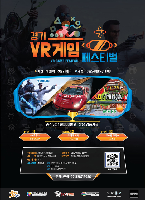 °æ±âµµ¿Í °æ±âÄÜÅÙÃ÷ÁøÈï¿øÀº VR »ê¾÷ Ȱ¼ºÈ­¸¦ À§ÇØ ¿À´Â 24ÀÏ ±¤±³ °æ±â¹®È­Ã¢Á¶Çãºê¿¡¼­ ÃÑ»ó±Ý 1,500¸¸¿ø ±Ô¸ð·Î VR e-½ºÆ÷Ã÷ ´ëȸÀÎ ¡®°æ±â VR °ÔÀÓ Æä½ºÆ¼¹ú¡¯À» °³ÃÖÇÑ´Ù°í 14ÀÏ ¹àÇû´Ù. °æ±â Á¾¸ñÀº ¡ã·Î¿ì µ¥ÀÌÅÍ(RAW DATA)¿Í ¡ãÇÁ·ÎÁ§Æ® Ä«½º2(Project CARS2), ¡ãÈĸ£Ã÷ ´ÑÀÚ VR(Fruit Ninja VR) µî 3Á¾¸ñÀ̸ç VR °ÔÀÓ °æ±â°¡ °¡´ÉÇÑ ´ëÇѹα¹ ±¹¹Î ´©±¸³ª Âü¿© °¡´ÉÇÏ´Ù.