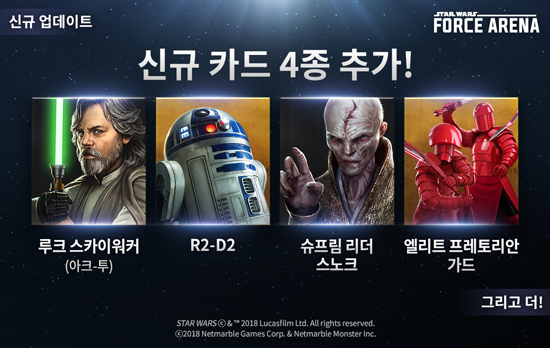 ³Ý¸¶ºí°ÔÀÓÁî(ÀÌÇÏ ³Ý¸¶ºí)´Â ¸ð¹ÙÀÏ ½Ç½Ã°£ ´ëÀü °ÔÀÓ ¡®½ºÅ¸¿öÁî: Æ÷½º¾Æ·¹³ª(STAR WARS¢â: Force Arena)¡¯¿¡¼ ij¸¯ÅÍ Ãß°¡ µî ´ë±Ô¸ð ¾÷µ¥ÀÌÆ®¸¦ ½Ç½ÃÇß´Ù°í 16ÀÏ ¹àÇû´Ù.