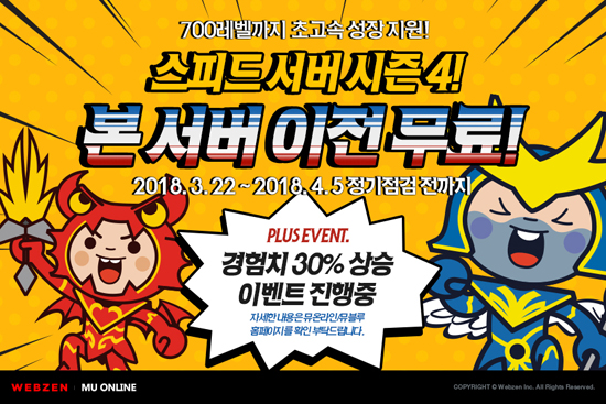 À¥Á¨Àº 22ÀϺÎÅÍ 4¿ù 5ÀÏ Á¤±âÁ¡°Ë Àü±îÁö ¡®½ºÇÇµå ¼¹ö¡¯¿¡¼ ij¸¯Å͸¦ À°¼º ÁßÀΠȸ¿øµéÀ» ´ë»óÀ¸·Î º» ¼¹ö·Î ÀÌÀü °¡´ÉÇÑ ¡®ÇÁ¸®¹Ì¾ö ¼¹ö ÀÌÀü ÄíÆù¡¯À» ¹«·á·Î ÆÇ¸ÅÇÑ´Ù. ¡®¹Â ¿Â¶óÀΡ¯ ȸ¿øµéÀÇ ºü¸¥ ij¸¯ÅÍ À°¼ºÀ» À§ÇØ Áö³ 2¿ù 22ÀϺÎÅÍ ¿î¿µ ÁßÀÎ ¡®½ºÇÇµå ¼¹ö ½ÃÁð 4¡¯´Â ¿À´Â 3¿ù 29ÀÏ Á¾·áµÈ´Ù.