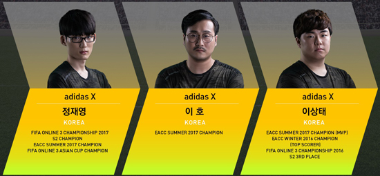 °¡Àå À¯·ÂÇÑ ¿ì½Â È帷Π°Å·ÐµÇ°í ÀÖ´Â ¡®Team Adidas X¡¯´Â ÀÛ³â 11¿ù 25ÀÏ °³ÃÖµÈ ¡®FIFA ¿Â¶óÀÎ 3 ¾Æµð´Ù½º èÇǾð½Ê 2017 ½ÃÁð2' ¿ì½ÂÀÚ Á¤À翵À» ºñ·Ô, ¡®EACC Summer 2017¡¯¿¡¼ ¿ì½ÂÀ» Â÷ÁöÇÑ ÀÌÈ£, ÀÌ»óÅ µî ÃÊÈ£È ¸â¹ö·Î ±¸¼ºµÅ ÀÖ´Ù. À̵éÀº Áß±¹ ±¤Àú¿ì Æú¸® ¿ùµå Æ®·¹ÀÌµå ¼¾ÅÍ(Poly World Trade Center)¿¡¼ ÁøÇàµÈ ¡®EACC Summer 2017¡¯ °á½ÂÀü¿¡¼ ¾ÐµµÀûÀÎ °æ±â·ÂÀ» ¹ÙÅÁÀ¸·Î ű¹ ´ëÇ¥ÆÀ ¡®Æ¼¿£ÇÇ¡¯¸¦ ²ª°í »ó±Ý 15¸¸´Þ·¯¸¦ °Å¸ÓÁå ¹Ù ÀÖ´Ù.