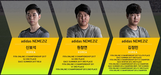 ¡®Team Adidas NEMEZIZ¡¯´Â ¡®FIFA ¿Â¶óÀÎ 3 ¾Æµð´Ù½º èÇǾð½Ê 2017 ½ÃÁð2' 2~4À§¸¦ Â÷ÁöÇÑ ½Åº¸¼®, ¿øÃ¢¿¬, ±èÁ¤¹Î ¼±¼ö·Î ±¸¼ºµÈ ÀüÅëÀÇ °È£´Ù. »ó´ë ¿òÁ÷ÀÓ°ú ÆÐ½º È帧À» °£ÆÄÇÏ´Â ¼¾½º, °ß°íÇÑ ¼öºñ·Â µîÀÌ ÀåÁ¡ÀÎ ½Åº¸¼® ¼±¼ö´Â ƯÀ¯ÀÇ ÅºÅºÇÑ ¼öºñ·ÂÀ» ¾Õ¼¼¿î Á¡À¯À² Ã౸¸¦ ¼±º¸Àδٴ °èȹÀÌ´Ù.
