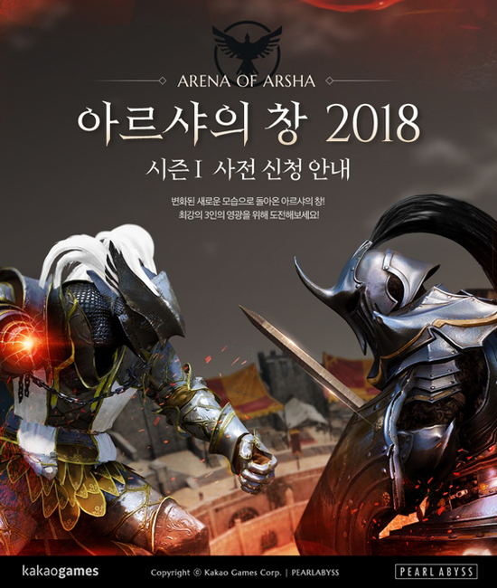 ÆÞ¾îºñ½º°¡ °³¹ßÇϰí īī¿À°ÔÀÓÁî¿¡¼ ¼ºñ½º ÁßÀÎ MMORPG '°ËÀº»ç¸·'ÀÌ 29ÀÏ, ¡®¾Æ¸£»þÀÇ Ã¢ 2018 ½ÃÁð1¡¯ÀÇ »çÀü ½ÅûÀ» ½ÃÀÛÇß´Ù. ¡®¾Æ¸£»þÀÇ Ã¢¡¯Àº 60·¹º§ ÀÌ»ó ¸ðÇè°¡ 3ÀÎÀÌ ÇÑ ÆÀÀÌ µÇ¾î ÁøÇàÇÏ´Â PVP ´ëÀü À̺¥Æ®´Ù. 29ÀϺÎÅÍ 4¿ù 8ÀϱîÁö »çÀü ½ÅûÀÌ ÁøÇàµÇ¸ç, ´ëÁøÇ¥´Â 4¿ù 11ÀÏ¿¡ ¹ßÇ¥ÇÑ´Ù. ¿¹¼±ÀüÀº 4¿ù 14Àϰú 21ÀÏ¿¡, º»¼±Àº 4¿ù 28ÀÏ¿¡ °³ÃÖµÉ ¿¹Á¤ÀÌ´Ù.