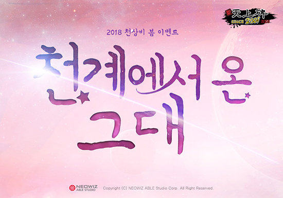 ³×¿ÀÀ§Áî´Â ³×¿ÀÀ§Áî¿¡ÀÌºí½ºÆ©µð¿À°¡ °³¹ßÇÑ ¿Â¶óÀÎ MMORPG ¡®½Å õ»óºñ¡¯¿¡¼ º½¸ÂÀÌ À̺¥Æ® ¡®Ãµ°è¿¡¼ ¿Â ±×´ë¡¯¸¦ ÁøÇàÇÑ´Ù°í 6ÀÏ ¹ßÇ¥Çß´Ù. 5¿ù 3ÀϱîÁö ¾à ÇÑ ´Þ°£ ÁøÇàµÇ´Â À̹ø À̺¥Æ®´Â 4¿ù ¡®Ãµ°èÀÇ ´Þ¡¯À» ¸ÂÀÌÇØ ¡®Ãµ°è º¢²É³ª¹«¡¯¿Í ¡®Ãµ°è ¼±³à¡¯°¡ ´Ù¾çÇÑ °ÔÀÓ Ç÷¹ÀÌ¿Í º¸»óÀ» ÅëÇØ Áñ°Å¿òÀ» ¼±»çÇÑ´Ù´Â ÄܼÁÆ®·Î ±¸¼ºµÇ¾ú´Ù.