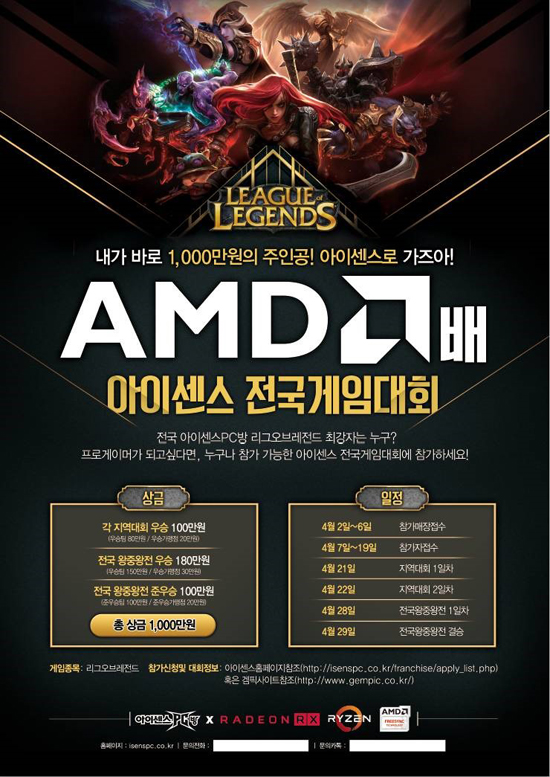 AMD ÄÚ¸®¾Æ°¡ PC¹æ ÇÁ·£Â÷ÀÌÁî ¾ÆÀ̼¾½º¸®±×PC¹æ°ú °øµ¿À¸·Î ¡®¾ÆÀ̼¾½º Àü±¹°ÔÀÓ´ëȸ¡¯¸¦ °³ÃÖÇÑ´Ù°í 9ÀÏ ¹àÇû´Ù. °ÔÀÓ Á¾¸ñÀº ÃÖ°í Àαâ e½ºÆ÷Ã÷ Á¾¸ñ Áß ÇϳªÀÎ ¡®¸®±×¿Àºê·¹Àüµå(League of Legends)¡¯·Î, Àü±¹ÀÇ ¾ÆÀ̼¾½º¸®±× PC¹æ °¡¸ÍÁ¡¿¡¼ ½Åû ¹× Âü¿©°¡ °¡´ÉÇÏ´Ù.
