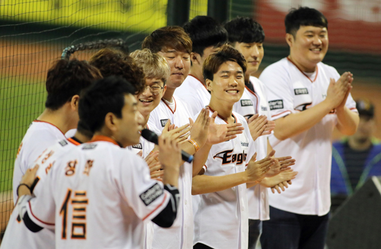 'ÇÑÈ»ý¸í e½ºÆ÷Ã÷ µ¥ÀÌ'·Î ²Ù¸çÁø ÀÌ ³¯ °æ±â¿¡¼ ±Ç»óÀ± ¼±¼ö¿Í °ÇöÁ¾ °¨µ¶ÀÌ °¢°¢ ½Ã±¸¿Í ½ÃŸ¿¡ ³ª¼¹´Ù. ÀÌ¿¡ ¾Õ¼ ÇÑÈ»ý¸í e½ºÆ÷Ã÷ÀÇ ÁÖÀåÀÎ ±Ç»óÀ± ¼±¼ö¿Í ÇÑÈÀ̱۽ºÀÇ ÁÖÀå ´ëÇàÀÎ ¼Û±¤¹Î ¼±¼ö°¡ ÇÑÈÀÇ »õ °¡Á·ÀÌ µÈ Àǹ̿¡¼ À¯´ÏÆûÀ» ±³È¯ÇÏ´Â ÈÆÈÆÇÑ ¸ð½ÀÀÌ ¿¬ÃâµÅ ÆÒµéÀÇ Å« ȯȣ¸¦ ¹Þ¾Ò´Ù.