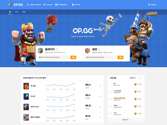 ¿ÀÇÇÁöÁö(OP.GG)´Â 9ÀÏ ½´ÆÛ¼¿ÀÇ ´ëÇ¥ ¸ð¹ÙÀÏ Àü·« °ÔÀÓ 'Ŭ·¡½Ã·Î¾â' ÀüÀû °Ë»ö º£Å¸ ¼ºñ½º(cr.op.gg)¸¦ ½ÃÀÛÇÑ´Ù°í ¹àÇû´Ù.
