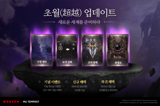 À¥Á¨Àº 5¿ù 10ÀÏ ¡®¹Â ÅÛÆä½ºÆ®¡¯ÀÇ Á¡°Ë ½Ã°£À» °®°í, ij¸¯ÅÍ ¼ºÀå ÇѰ踦 ¶Ù¾î³ÑÀ» ¼ö ÀÖ´Â ¡®º¸¼® °È¡¯ ½Ã½ºÅÛ°ú ±×¿¡ ÇÊ¿äÇÑ Àç·á ¼ö±ÞÀÌ °¡´ÉÇÑ ¡®¼öÁ¤ ±¤»ê¡¯ µî ±âÁ¸ ÄÜÅÙÃ÷¿¡ »õ·Î¿òÀ» ´õÇÑ ¡®ÃÊ¿ù(õ±êÆ)¡¯ ¾÷µ¥ÀÌÆ®¸¦ ÁøÇàÇß´Ù.