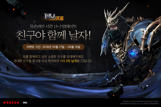 ÇÑÆí, À¥Á¨Àº ¾÷µ¥ÀÌÆ®¿¡ ¾Õ¼ 5¿ù 17ÀÏ Á¤±âÁ¡°Ë ÀÌÈĺÎÅÍ 6¿ù 19ÀϱîÁö ¾à 5ÁÖ °£ Ä£±¸ ÃÊ´ë À̺¥Æ®¸¦ ÁøÇàÇÑ´Ù. ¶ÇÇÑ, À¥Á¨Àº 1Â÷ ¾÷µ¥ÀÌÆ® Àü³¯ÀÎ 5¿ù 28ÀϱîÁö ºü¸¥ »ç³ÉÀ» ÅëÇÑ ¼ºÀåÀ» Áö¿øÇÑ´Ù. À̿ܿ¡µµ À̹ø ¾÷µ¥ÀÌÆ® Á¤±âÁ¡°Ë Àü±îÁö ¿¹¾à À̺¥Æ®¿¡ Âü¿©ÇÑ ¸ðµç ȸ¿øµé¿¡°Ô´Â ¡®»ó½ÂÀÇ ºÎÀû(7ÀÏ)¡¯, ¡®°ø¼ÓÀÇ ½ºÅ©·Ñ(7ÀÏ)¡¯ µî °ÔÀÓ¿¡ µµ¿òÀÌ µÇ´Â ¾ÆÀÌÅÛÀ» ¼±¹°·Î Áö±ÞÇÑ´Ù. ¿ÃÇØ Ãâ½Ã 17ÁÖ³âÀ» ¸ÂÀº ¡®¹Â ¿Â¶óÀΡ¯Àº °èÀý°¨ ÀÖ´Â À̺¥Æ® ÁøÇà°ú ½Å±Ô ÄÜÅÙÃ÷ ¾÷µ¥ÀÌÆ®, ²ÙÁØÇÑ ¼ÒÅëÀ¸·Î ȸ¿øµé¿¡°Ô »ç¶û ¹ÞÀ¸¸ç ±× ¸í¼ºÀ» À̾°í ÀÖ´Ù.