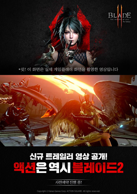 īī¿À°ÔÀÓÁî´Â 5ÀÏ(È), ¾×¼Ç½ºÄù¾î¿¡¼ °³¹ß ÁßÀÎ ¸ð¹ÙÀÏ ¾×¼Ç RPG ´ëÀÛ ¡®ºí·¹À̵å2 for kakao¡¯ÀÇ ½Å±Ô Æ®·¹ÀÏ·¯ ¿µ»óÀ» °ø°³Çß´Ù.