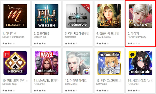 ³Ø½¼Àº ÀÚ»çÀÇ ¸ð¹ÙÀÏ MMORPG ¡®Ä«ÀÌÀú(KAISER)¡¯°¡ Á¤½Ä ¼ºñ½º ½ÃÀÛ 3ÀÏ ¸¸¿¡ ±¸±Û Ç÷¹ÀÌ ½ºÅä¾î ¸ÅÃâ 5À§¸¦ ±â·ÏÇß´Ù°í 11ÀÏ ¹àÇû´Ù. Áö³ 7ÀÏ Á¤½Ä Ãâ½ÃµÈ ¡®Ä«ÀÌÀú¡¯´Â 3040¼¼´ë ÀÌ¿ëÀÚ Áõ°¡¿¡ ÈûÀÔ¾î ÇöÀç ±¸±Û Ç÷¹ÀÌ ½ºÅä¾î ¸ÅÃâ ¼øÀ§ 5À§¿¡ ¿Ã¶óÀÖ´Ù. ±¸±Û Ç÷¹ÀÌ ½ºÅä¾î ¸ÅÃâ 10À§±Ç¿¡ ÁøÀÔÇÑ À¯ÀÏÇÑ ÀÚü IP ±â¹Ý MMORPG´Ù.