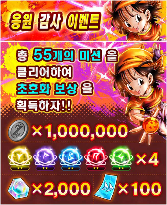 ¡®ÀÀ¿ø °¨»ç À̺¥Æ®¡¯¿¡¼´Â °ÔÀÓ ³» °ñµåÀÎ ¡®Á¦´Ï¡¯¸¦ ÃÖ´ë 1,000,000Àå, ij¸¯ÅÍ À°¼º¿¡ ÇÊ¿äÇÑ ¡®½´ÆÛ ¼Ò¿ï2¡¯¸¦ ÃÖ´ë 20°³, °ÔÀÓ ³» ÈÆóÀÎ ¡®½Ã°£ÀÇ °áÁ¤¡¯À» ÃÖ´ë 2,000°³ ÁõÁ¤ÇÑ´Ù. ȹµæ ¹æ¹ýÀº °ÔÀÓ³» ij¸¯ÅÍ ·¹º§ÀÌ 300, 600, 1000·¹º§À» ´Þ¼ºÇÒ ¶§¸¶´Ù Á¦´Ï 200,000Àå, ¡®½´ÆÛ ¼Ò¿ï2¡¯ 4°³, ¡®½Ã°£ÀÇ °áÁ¤¡¯ 400°³¸¦ °¢°¢ ¼±¹°ÇÑ´Ù. ¶ÇÇÑ ÀÌ º¸»óÀº °¢°¢ÀÇ ¼Ó¼º(ÃÑ5°¡Áö)º° °¢ ij¸¯Å͸¶´Ù ¹ÞÀ» ¼ö ÀÖ´Â º¸»óÀ̱⠶§¹®¿¡ ij¸¯Å͸¦ À°¼ºÇϸé ÇÒ ¼ö·Ï º¸»óÀÌ È£È·Î¿öÁö´Â Ä·ÆäÀÎÀÌ´Ù.