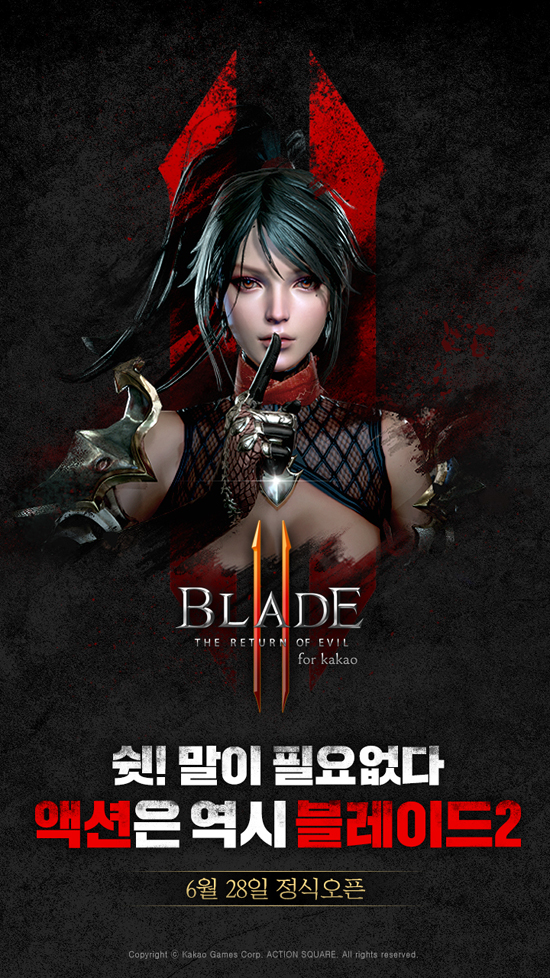 īī¿À°ÔÀÓÁî°¡ 6¿ù 28ÀÏ(¸ñ) ¾×¼Ç½ºÄù¾î¿¡¼ °³¹ß ÁßÀÎ ¸ð¹ÙÀÏ ¾×¼Ç RPG ´ëÀÛ ¡®ºí·¹À̵å2 for kakao¡¯¸¦ Á¤½Ä Ãâ½ÃÇÑ´Ù.