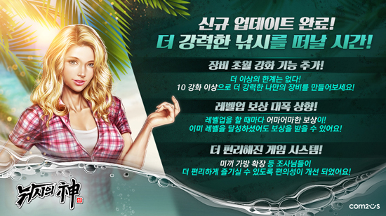 ÄÄÅõ½º´Â Àڻ簡 °³¹ßÇÏ°í ¼ºñ½ºÇÏ´Â 3D ¸®¾ó ³¬½Ã °ÔÀÓ ¡®³¬½ÃÀÇ ½Å¡¯ÀÇ ½Å±Ô ¾÷µ¥ÀÌÆ®¸¦ ½Ç½ÃÇß´Ù°í ¹àÇû´Ù.