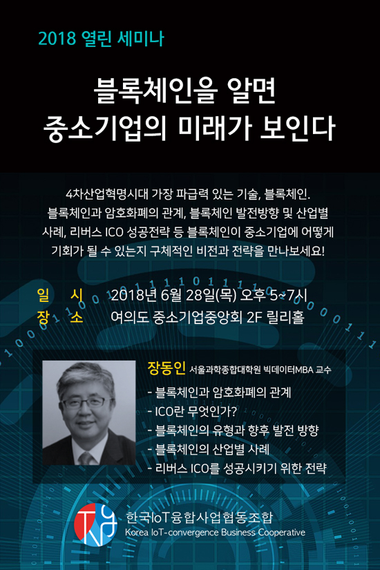 Çѱ¹IoTÀ¶ÇÕ»ç¾÷Çùµ¿Á¶ÇÕÀº ¿À´Â 28ÀÏ ¡®ºí·ÏüÀÎÀ» ¾Ë¸é Áß¼Ò±â¾÷ÀÇ ¹Ì·¡°¡ º¸Àδ١¯¶ó´Â ÁÖÁ¦ÀÇ ¿¸°¼¼¹Ì³ª¸¦ ¿©Àǵµ Áß¼Ò±â¾÷Áß¾Óȸ ¸±¸®È¦¿¡¼ ¹«·á·Î °³ÃÖÇÑ´Ù°í ¹àÇû´Ù. Á¶ÇÕÃøÀº ¸Å³â Áß¼Ò±â¾÷ °æ¿µ¿¡ ÇÊ¿äÇÑ Æ®·»µå³ª ÀλçÀÌÆ®¸¦ °øÀ¯ÇÒ ¼ö ÀÖ´Â ¿¸°¼¼¹Ì³ª¸¦ ¸Å³â ÁøÇàÇØ¿Ô´Ù. À۳⿡´Â 4Â÷ »ê¾÷Çõ¸íÀ» ÁÖÁ¦·Î ÁøÇàÇßÀ¸¸ç, ¿ÃÇØ´Â Àü¼¼°èÀûÀ¸·Î Á¤Ä¡, °æÁ¦, »çȸ µî ´Ù¾çÇÑ »ê¾÷¿¡ Å« ¿µÇâ·ÂÀ» ¹ÌÄ¡°í ÀÖ´Â ºí·ÏüÀÎÀ» ÁÖÁ¦·Î ´Ù·é´Ù. ºí·ÏüÀΰú ¾ÏÈ£ÈÆóÀÇ °ü°è, ºí·ÏüÀÎ ¹ßÀü¹æÇâ ¹× »ê¾÷º° »ç·Ê, ¸®¹ö½º ICO ¼º°øÀü·« µî ºí·ÏüÀÎÀÌ Áß¼Ò±â¾÷¿¡ ¾î¶»°Ô ±âȸ°¡ µÉ ¼ö ÀÖ´ÂÁö ±¸Ã¼ÀûÀÎ ºñÀü°ú Àü·«À» Á¦½ÃÇÒ ¿¹Á¤ÀÌ´Ù. À̹ø ¿¸°¼¼¹Ì³ª´Â ¼¿ï°úÇÐÁ¾ÇÕ´ëÇпø ºòµ¥ÀÌÅÍMBA ±³¼öÀÌÀÚ µ¿ ´ëÇпøÀÇ AiBB¿¬±¸¼Ò(AI, BIGDATA, Blockchain) ¼ÒÀåÀ» ¿ªÀÓÇϰí ÀÖÀ¸¸ç, ¡®ºòµ¥ÀÌÅÍ·Î ÀÏÇÏ´Â ±â¼ú¡¯ µî ´Ù¼öÀÇ Ã¥À» Àú¼úÇÑ À嵿ÀÎ ¹Ú»ç°¡ °¿¬ÀÚ·Î Âü¿©ÇÑ´Ù. ¼¼¹Ì³ª ½ÅûÀº ¿Â¿ÀÇÁ¹Í½º ¹× ½Åû¸µÅ©(https://goo.gl/enyHhw)¸¦ ÅëÇØ ÇÒ ¼ö ÀÖ´Ù.