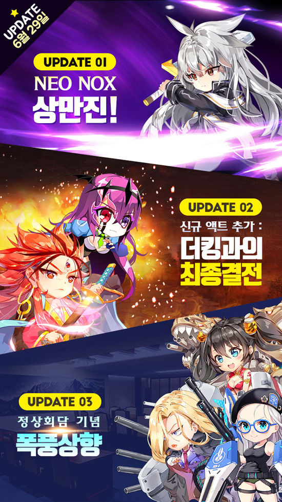 ´ÙÀ½À¸·Î ±âÁ¸ ij¸¯ÅÍ¿¡ ´ëÇÑ ½ºÅ³ »óÇâ ¾÷µ¥ÀÌÆ®µµ ÁøÇàµÆ´Ù. ÀϺ» Àα⠾ִϸÞÀÌ¼Ç ¡®ÀÌ ¸ÚÁø ¼¼°è¿¡ ÃູÀ»!¡¯°úÀÇ Äݶ󺸷¹À̼ÇÀ¸·Î Å« Àα⸦ ²ø¾ú´ø [Űí] ¸ðÇè°¡ Ä«Á, [Űí] ¾ÆÅ©À§Àúµå ¸Þ±¸¹Ö, [Űí] Å©·ç¼¼ÀÌ´õ ´ÙÅ©´Ï½º¸¦ Æ÷ÇÔÇØ ¿ìÁÖÃÖ°TS 3Á¾ÀÎ [Űí] 3´ëÀå ¹®Àç´Ï, 3´ëÀå Æ®·³ÇÇ, 3´ëÀå ½ÃÁøÂô±îÁö ÃÑ 6Á¾ ij¸¯ÅÍ¿¡ ´ëÇÑ ½ºÅ³ÀÌ °ÈµÆ´Ù. ´õºÒ¾î ½ÃÁð4 Act10ÀÇ 6°³ ½ºÅ×ÀÌÁöµµ »õ·Ó°Ô Ãß°¡µÅ ´õ¿í Â¥¸´ÇÑ ÀüÅõÀÇ Àç¹Ì¸¦ ¼±»çÇÒ ¿¹Á¤ÀÌ´Ù.