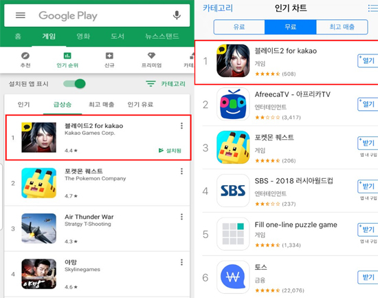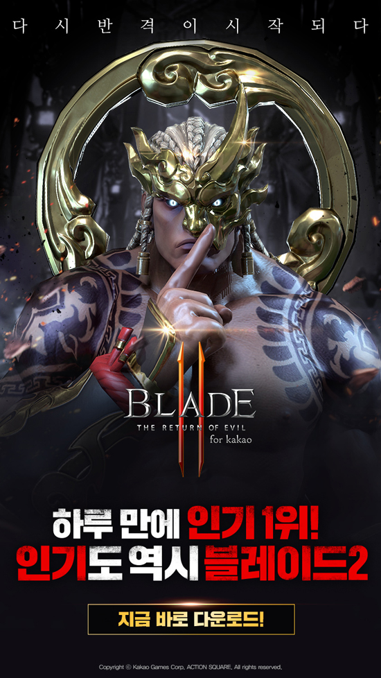 īī¿À°ÔÀÓÁî´Â 29ÀÏ ¾×¼Ç½ºÄù¾î¿¡¼ °³¹ßÇÑ ¸ð¹ÙÀÏ ¾×¼Ç RPG ´ëÀÛ ¡®ºí·¹À̵å2 for kakao¡¯°¡ Ãâ½Ã Á÷ÈÄ, ¾ÖÇà ¾Û½ºÅä¾î Àα⠰ÔÀÓ°ú ±¸±Û Ç÷¹ÀÌ ±Þ»ó½Â ¹× ½Å±Ô Àα⠰ÔÀÓ ¼øÀ§ 1À§¸¦ Â÷ÁöÇß´Ù°í ¹àÇû´Ù.