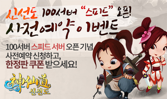 ¿£Å͸ÞÀÌÆ®°¡ ¼ºñ½º ÁßÀÎ À¥RPG ¡®½Å¼±µµ¡¯°¡ 100¹øÂ° ¼¹ö ¡®½ºÇǵ塯 ¿ÀÇÂÀ» ±â³äÇÏ¿© »çÀü ¿¹¾à À̺¥Æ®¸¦ 17ÀÏ ½Ç½ÃÇÑ´Ù°í ¹àÇû´Ù. À̹ø ½ºÇÇµå ¼¹ö ¿ÀÇÂÀ» ±â³äÇÏ¿© »çÀü ¿¹¾à À̺¥Æ®¸¦ ½Ç½ÃÇÑ´Ù. À̺¥Æ® ÆäÀÌÁö¸¦ ÅëÇØ »çÀü ¿¹¾à ½ÅûÇÏ¸é ½ÅûÀÚ Àü¿ø¿¡°Ô ½ºÇÇµå ¼¹ö¿¡¼ »ç¿ë °¡´ÉÇÑ ±ÝÈ, ¿±Àü, °æÇèÄ¡´Ü µîÀÌ Æ÷ÇÔµÈ ÇÑÁ¤ÆÇ Ưº° ÄíÆùÀÌ Áö±ÞµÈ´Ù. À̿ܿ¡ ¼¹ö ¿ÀÇÂÀ» ±â³äÇÏ¿© ´Ùä·Î¿î À̺¥Æ®µµ Áغñ Áß¿¡ ÀÖ´Ù. ¡®½ºÇǵ塯 ¼¹ö´ä°Ô ºü¸¥ ¼ºÀåÀ»°æÇè ÇÒ ¼ö ÀÖ´Â ¼ºÀå Áö¿ø ¾ÆÀÌÅÛµµ Áö±ÞµÈ´Ù.