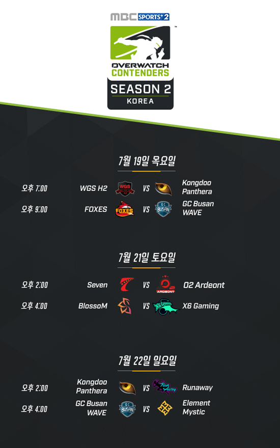 MBC½ºÆ÷Ã÷Ç÷¯½º2´Â 19ÀÏ (¿ÀÈÄ 7½Ã), 21~22ÀÏ (³· 2½Ã) 3Àϰ£ ¼­°­´ëÇб³ üÀ°°ü¿¡¼­ ¿­¸®´Â ¡®¿À¹ö¿öÄ¡ ÄÁÅÙ´õ½º ÄÚ¸®¾Æ ½ÃÁð 2¡¯ 3ÁÖÂ÷ °æ±â¸¦ »ýÁß°èÇÑ´Ù. ½ÃÁð ÀÏÁ¤¿¡ µû¶ó ±ÝÁÖ¿¡´Â ¼ö¿äÀÏ¿¡ °æ±â°¡ ¿­¸®Áö ¾Ê´Â´Ù.