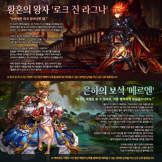 °ÔÀÓºôÀÌ ¡®º°À̵Ǿî¶ó!¡¯ ½ÃÁð 6 ¡®½Å¼¼°è¡¯ °ø°³ ÀÌÈÄ Ã¹ ¹øÂ° ¾÷µ¥ÀÌÆ®¸¦ ½Ç½ÃÇß´Ù. ¡®º°À̵Ǿî¶ó!¡¯´Â À̹ø ¾÷µ¥ÀÌÆ®¸¦ ÅëÇØ ÃÖ»óÀ§ µî±Þ ½ÅÀ§ µ¿·áÀÎ ¡®·ÎÅ© Áø ¶ó±×³ª¡¯¿Í ¡®¸Þ¸£¿£¡¯À» ÃÖÃÊ·Î °ø°³Çß´Ù. ¡®·ÎÅ© Áø ¶ó±×³ª¡¯´Â ȲȥÀÇ ¿ÕÀÚ·Î ºÒ¸®¸ç, ¾Æ±º ÀüüÀÇ ¹æ¾î·ÂÀ» Áõ°¡½ÃŰ´Â Àü»ç ij¸¯ÅÍ´Ù. ¡®¸Þ¸£¿£¡¯Àº ¡®ÀºÇÏÀÇ º¸¼®¡¯À̶ó´Â º°¸íÀÌ ºÙÀº ¹ý»ç ij¸¯ÅÍ·Î ¾Æ±º Àüü ¸¶¹ý °ø°Ý·ÂÀ» Áõ°¡½ÃŰ´Â ´É·ÂÀ» Áö³æ´Ù.