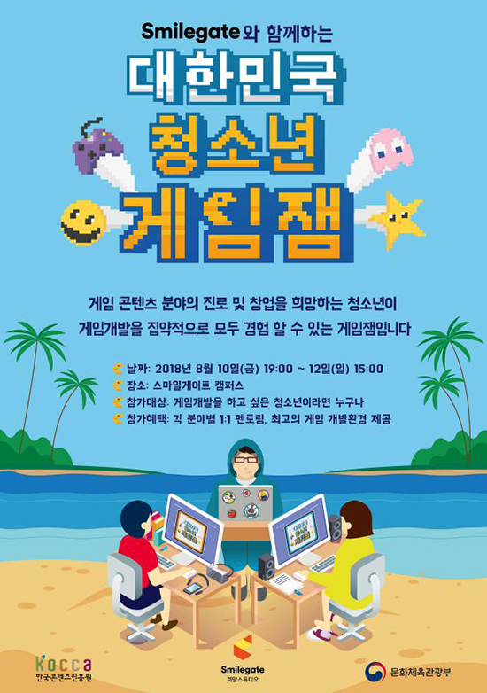 ¹®ÈüÀ°°ü±¤ºÎ¿Í Çѱ¹ÄÜÅÙÃ÷ÁøÈï¿ø(KOCCA)Àº ½º¸¶ÀϰÔÀÌÆ® Èñ¸Á½ºÆ©µð¿À¿Í ÇÔ²² ¿À´Â 10ÀϺÎÅÍ 12ÀϱîÁö ¼º³²½Ã ÆÇ±³ ½º¸¶ÀϰÔÀÌÆ® Ä·ÆÛ½º¿¡¼ ¡®2018 ´ëÇѹα¹ û¼Ò³â °ÔÀÓÀ롯À» °³ÃÖÇÑ´Ù.