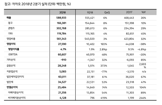 [īī¿À] 2018³â 2ºÐ±â ¿¬°á ¸ÅÃâ 5,889¾ï¿ø, Àü³âµ¿±â ´ëºñ 26% Áõ°¡ |