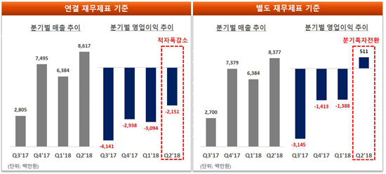 ¿¬°á ±âÁØÀ¸·Î 2ºÐ±â ¸ÅÃâ¾×Àº 86¾ï¿øÀ¸·Î Àü³â µ¿±â ´ëºñ(YoY) 171%°¡ »ó½ÂÇÑ °ÍÀº ¹°·Ð Áö³ ºÐ±â ´ëºñ(QoQ)·Îµµ 35% Áõ°¡Çß´Ù. ¿µ¾÷¼Õ½ÇÀº 22¾ï¿ø, ´ç±â¼ø¼Õ½ÇÀº 22¾ï¿øÀ¸·Î ÀüºÐ±â ´ëºñ °¢°¢ 30%, 26% ÀûÀÚÆøÀ» Ãà¼Ò½ÃÄ×´Ù. °³¹ß ½ºÆ©µð¿À È®´ë¿Í ½Å±Ô ÇÁ·ÎÁ§Æ®¿¡ ´ëÇÑ Àη ÅõÀÚ·Î ÀÎÇØ °íÁ¤ ºñ¿ëÀÌ »ó½ÂÇÏ¸é¼ ¿µ¾÷¼Õ½ÇÀÌ À̾îÁ³À¸³ª, Áö³ÇØ¿Í ºñ±³ÇØ ¸ÅÃâÀº ¿Ã¶ú°í ÀûÀÚÆøÀº °¨¼ÒÇÏ´Â µî ¼ÕÀÍ °³¼±ÀÇ ¿òÁ÷ÀÓÀ» º¸¿´´Ù.