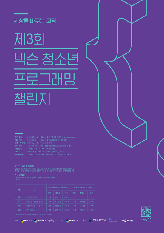 ³Ø½¼Àº 13ÀÏ ¡®Á¦ 3ȸ ³Ø½¼ û¼Ò³â ÇÁ·Î±×·¡¹Ö 縰Áö(Nexon Youth Programming Challenge, ÀÌÇÏ NYPC)¡¯ÀÇ ´ëȸ Âü°¡ÀÚ¸¦ ¸ðÁýÇÑ´Ù°í ¹àÇû´Ù.
