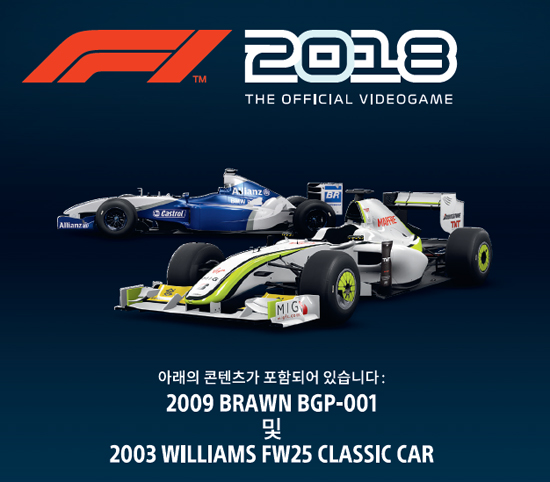 ¡®F1¢â 2018 HEADLINE EDITION¡¯ÀÇ ¼±ÁÖ¹® ÆÇ¸Å´Â 8¿ù 17ÀϺÎÅÍ 8¿ù 22ÀϱîÁöÀ̸ç, Èñ¸Á¼ÒºñÀÚ°¡°ÝÀº 59,800¿øÀ¸·Î 2009 BRAWN BGP-001 ¹× 2003 WILLIAMS FW25 CLASSIC CAR DLC¸¦ Æ÷ÇÔÇÑ´Ù.