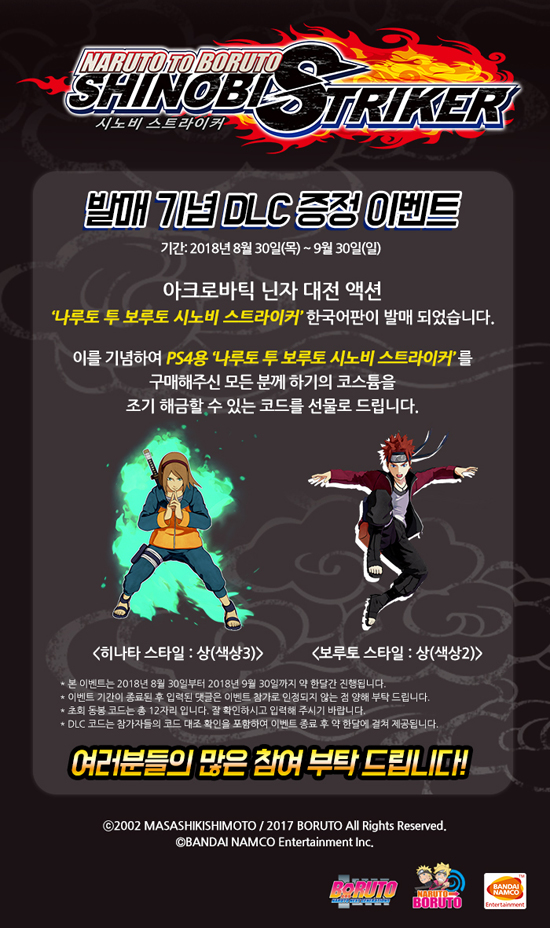 À̹ø ¡®³ª·çÅä Åõ º¸·çÅä ½Ã³ëºñ ½ºÆ®¶óÀÌÄ¿¡¯ÀÇ Çѱ¹¾îÆÇ ¹ß¸Å¸¦ ±â³äÇÏ¿© ¹Ý´ÙÀ̳²ÄÚ ¿£ÅÍÅ×ÀÎ¸ÕÆ® ÄÚ¸®¾Æ °ø½Ä ºí·Î±×¿¡¼´Â PS4¿ë ¡®³ª·çÅä Åõ º¸·çÅä ½Ã³ëºñ ½ºÆ®¶óÀÌÄ¿¡¯ ±¸¸ÅÀÚ Àü¿ø¿¡°Ô ÄÚ½ºÆ¬À» Á¶±â ÇØ±ÝÇÒ ¼ö ÀÖ´Â DLCÄڵ带 ÁõÁ¤ÇÑ´Ù.