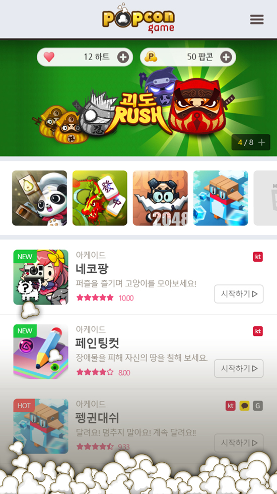 KT¿Í ¸ðºñ°ÔÀÓÀº HTML5 ±â¹Ý ÄÜÅÙÃ÷ »ç¾÷À» À§ÇØ Áö³ 6¿ù ¾÷¹«Á¦ÈÞ¸¦ ü°áÇß°í, 2°³¿ù¿©ÀÇ °øµ¿ °³¹ß ±â°£À» °ÅÃÄ ÇÏÀÌÆÛ °³ÁÖ¾ó °ÔÀÓÁ¸ ¡®ÆËÄܰÔÀÓ¡¯(popcongame.com)À» 9¿ù 2ÀÏ ½Ã¹ü ¿ÀÇÂÇß´Ù.