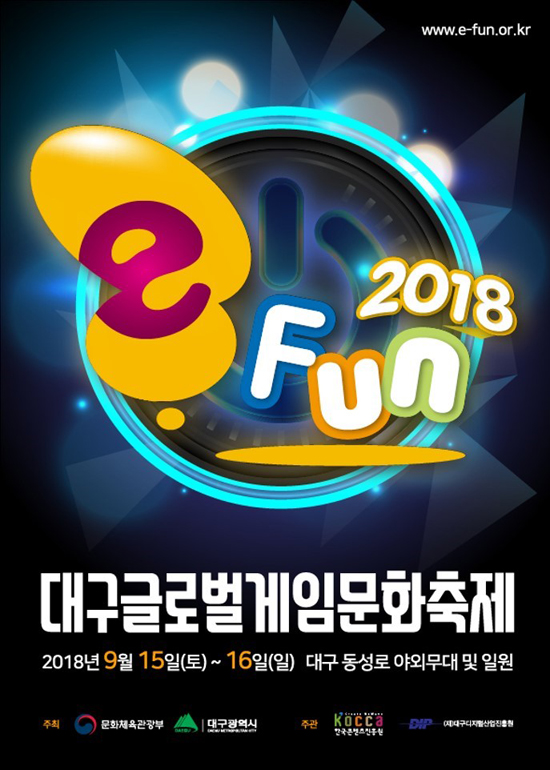 ÇØ¸¶´Ù Áö¿ª ½Ã¹ÎµéÀÇ ¹®È°ÝÂ÷¸¦ ÇØ¼ÒÇÏ°í °ÔÀÓÀÇ ¼ø±â´É ¾Ë¸®±â¿¡ ÀÏÁ¶ÇÑ '´ë±¸±Û·Î¹ú°ÔÀÓ¹®ÈÃàÁ¦ e-Fun 2018'Àº ¿ÃÇØµµ ´Ù¾çÇÑ Âü¿© ÇÁ·Î±×·¥À» ¸¶·ÃÇØ, ÀþÀº ¼¼´ë´Â ¹°·Ð °¡Á· ´ÜÀ§ÀÇ °ü¶÷°´±îÁö ¼ö¿ëÇÒ °èȹÀÌ´Ù.