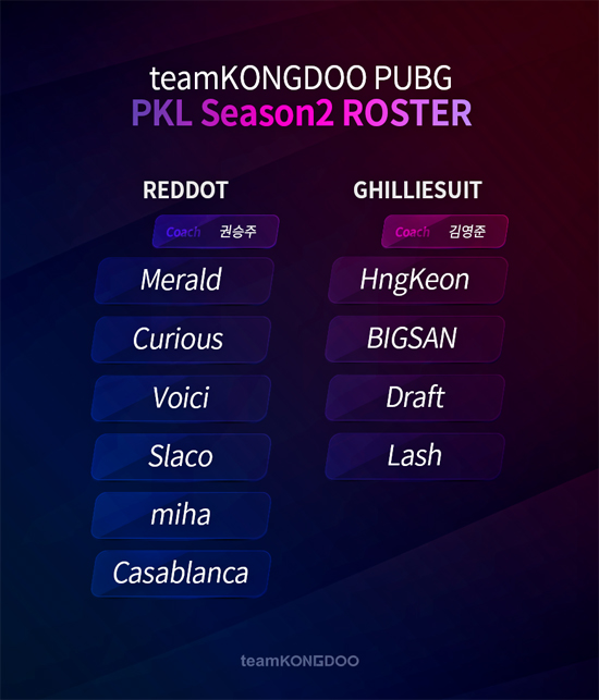 ÄáµÎ ·¹µåµµÆ® ÆÀÀº ±âÁ¸ ¸â¹öÀÎ ¡®Merald¡¯ À±Èñ¼º ¼±¼ö¿Í ¡®Curious¡¯ ÀÌ¿µ¹Î ¼±¼ö¸¦ Áß½ÉÀ¸·Î ï¡ ÄáµÎ ±æ¸®½´Æ®¿´´ø ¡®Voici¡¯ ±èÁØ¿¬, ¡®Casablanca¡¯ Á¤ÁØ¿µ ¼±¼ö°¡ ÇÕ·ùÇÏ°Ô µÇ¾ú´Ù. ´õºÒ¾î ï¡ EXL GamingÀÇ ¡®Slaco¡¯ À̱ԹÎ, ï¡ ·ÎÄÏ ¾Æ¸ÓÀÇ ¡®miha¡¯ Á¶´ëÇö ¼±¼ö¸¦ »õ·Î ¿µÀÔÇÏ¿´´Ù.