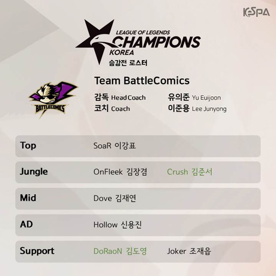 [KeSPA] 2019 LoL èÇǾ𽺠ÄÚ¸®¾Æ ½ºÇÁ¸µ ½Â°Àü ·Î½ºÅÍ °ø°³ |