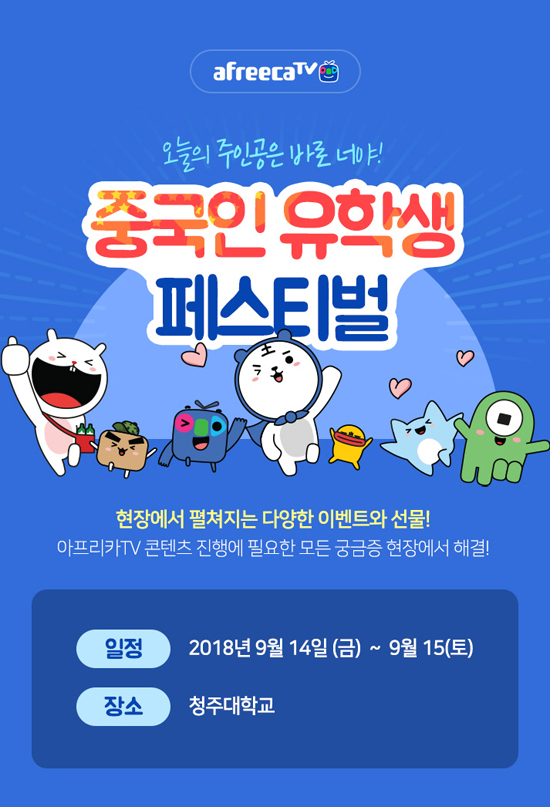 ¾ÆÇÁ¸®Ä«TV´Â ¡®Á¦ 8ȸ Áß±¹ÀÎ À¯Çлý Æä½ºÆ¼¹ú¡¯¿¡ Âü¿©ÇÏ´Â ¼ö ¸¹Àº Áß±¹ÀÎ À¯Çлý¿¡°Ô ¾ÆÇÁ¸®Ä«TV¸¦ ¼Ò°³ÇÑ´Ù´Â ¹æÄ§ÀÌ´Ù. ´Ù¾çÇÑ À̺¥Æ®µµ ÁغñÇß´Ù. ¾ÆÇÁ¸®Ä«TV °ø½Ä ¿þÀ̺¸(Weibo)¿Í À§ÃÂ(Wechat)À» ÆÈ·Î¿ìÇÏ¸é ´Ù¾çÇÑ »óǰ¿¡ ´ç÷µÉ ¼ö ÀÖ´Â Çà¿î±ÇÀ» ºÎ¿©ÇÒ °èȹÀÌ´Ù. ¶Ç, Á¤ÇØÁø ½Ã°£¿¡ ¾ÆÇÁ¸®Ä«TV ¾ÛÀ» ´Ù¿î ¹Þ°í ȸ¿ø°¡ÀÔÇÏ¸é »óǰÀ» ÁõÁ¤ÇÑ´Ù. Çà»ç ´çÀÏ ¾ÆÇÁ¸®Ä«TV ¾ÆÆ¼ ij¸¯ÅÍ ÀÎÇü ¾Õ¿¡¼ ¶óÀ̺ê·Î ¹æ¼ÛÀ» ÁøÇàÇÑ BJ Áß ½ÃûÀÚ°¡ °¡Àå ¸¹Àº 3¸í¿¡°Ô´Â »ó±Ýµµ Àü´ÞÇÒ ¿¹Á¤ÀÌ´Ù.