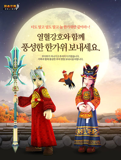 ¿¥°ÔÀÓ(´ëÇ¥ ±ÇÀÌÇü)Àº ¹ÎÁ· ÃÖ´ë ¸íÀý Ãß¼®À» ¸Â¾Æ Àڻ簡 ¼ºñ½º ÁßÀÎ ¿Â¶óÀΰÔÀÓ 4Á¾¿¡¼ dz¼ºÇÑ ÇѰ¡À§ ¿¬ÈÞ¸¦ º¸³¾ ¼ö ÀÖµµ·Ï ´Ù¾çÇÑ À̺¥Æ®¸¦ ½Ç½ÃÇÑ´Ù.