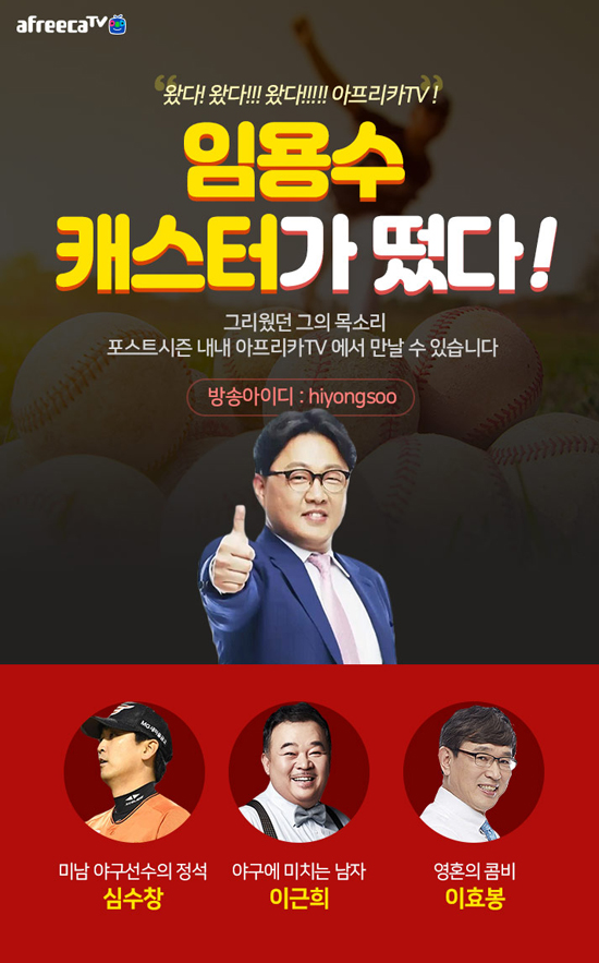 À̹ø ÇÁ·Î¾ß±¸ Æ÷½ºÆ®½ÃÁ𿡴 ƯÀ¯ÀÇ ÈûÂù ¸ñ¼Ò¸®¿Í ÀçÄ¡ ÀÖ´Â ¸àÆ®·Î ÇÁ·Î¾ß±¸ ÆÒµéÀÇ ¸¹Àº »ç¶ûÀ» ¹Þ´Â ÀÓ¿ë¼ö ij½ºÅͰ¡ ¾ÆÇÁ¸®Ä«TV¿¡¼ »ýÁ߰踦 ÁøÇàÇÑ´Ù. ÀÓ¿ë¼ö ij½ºÅÍÀÇ Áß°è¿¡´Â ¾ß±¸ÆÒÀ¸·Î ¾Ë·ÁÁø ¹è¿ì À̱ÙÈñ¾¾, '¿µÈ¥ÀÇ ÄÞºñ'·Î ºÒ¸®´Â ÀÌÈ¿ºÀ ÇØ¼³À§¿ø, ÃÖ±Ù±îÁö ÇÑÈÀ̱۽º¿¡¼ ÁÁÀº ¸ð½ÀÀ» º¸¿©Áá´ø ½É¼öâ ¼±¼ö°¡ ÇÔ²²ÇÑ´Ù.