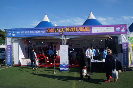 À̹ø ü°¨Çü °ÔÀÓÁ¸¿¡´Â Àü³²±Û·Î¹ú°ÔÀÓ¼¾ÅͰ¡ ¼±Á¤ÇÑ °ÔÀÓ ±â¾÷ ¢ß¹Ì·¡¾ß ³îÀÚ°¡ Âü¿©ÇØ VR ¾îÆ®·¢¼Ç ¡®¿¢½ºÅä³×À̵µ¡¯¿Í ¡®¿¢½ºÆÎÆÎ¡¯À» ¼±º¸¿´´Ù. ¡®¿¢½ºÅä³×À̵µ¡¯´Â »óÇÏÁ¿ì 360µµ·Î ¿òÁ÷À̴ ȸÀüÇü ¶óÀÌ´õ·Î, ÀÌ¿ëÀÚ°¡ ź ±â±â°¡ °¡»óÇö½Ç ¼Ó Àá¼öÇÔÀÌ µÇ¾î ½ÇÁ¦ ÇØÀú¸¦ ŽÇèÇÏ´Â °Í°ú °°Àº ¸ôÀÔ°¨°ú ÇöÀå°¨À» Á¦°øÇß´Ù. ·¹À̡̽¤·Ñ·¯ÄÚ½ºÅÍ µî ´Ù¾çÇÑ VR °ÔÀÓÀ» Áñ±æ ¼ö ÀÖ´Â °ÔÀÌ¹Ö Ã¼¾î ¡®¿¢½ºÆÎÆÎ¡¯ ¶ÇÇÑ ¹æ¹®°´µéÀÌ ´ë±â ÁÙÀ» ¼´Â µî Å« °ü½ÉÀ» ²ø¾ú´Ù.