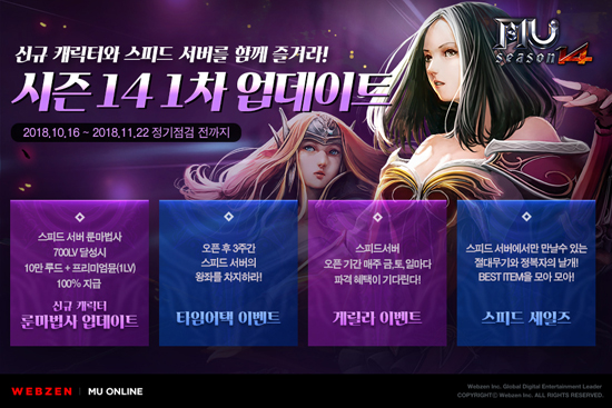 À¥Á¨Àº ¡®¹Â ¿Â¶óÀΡ¯ÀÇ ¡®½ÃÁð14¡¯ 1Â÷ ¾÷µ¥ÀÌÆ®¸¦ ±â³äÇØ ·©Å· À̺¥Æ®, °Ô¸±¶ó À̺¥Æ® µî dz¼ºÇÑ À̺¥Æ®µµ ÁøÇàÇÑ´Ù. ¸ÕÀú ½ºÇÇµå ¼­¹ö ŸÀÓ¾îÅà ·©Å· À̺¥Æ®¡¯¸¦ ÁغñÇß´Ù. ¾÷µ¥ÀÌÆ® ÀÌÈÄ 11¿ù 6ÀϱîÁö 700·¹º§À» ´Þ¼ºÇÑ ¸ðµç ȸ¿øµé¿¡°Ô ¡®10¸¸ ·çµå¡¯¸¦ ¼±¹°·Î ÁÖ°í, °¡Àå »¡¸® 700·¹º§À» ´Þ¼ºÇÑ 5¸í¿¡°Ô´Â ¡®20¸¸ ·çµå¡¯, ¡®¿µ¿õ ºí·¯µå¿£Á©ÀÇ È¥¡¯°ú °°Àº Ưº°ÇÑ º¸»óÀ» Ãß°¡ Áö±ÞÇÑ´Ù.